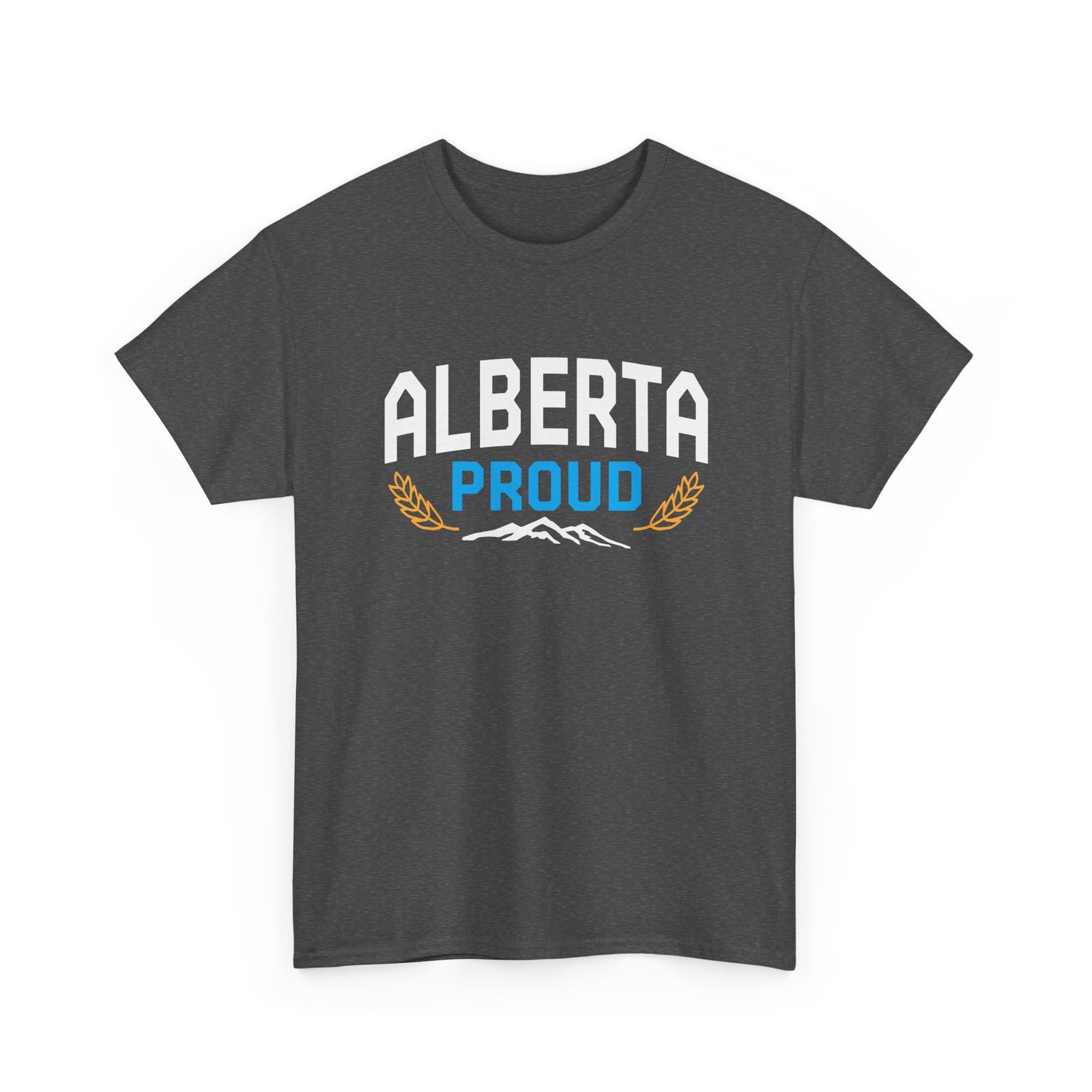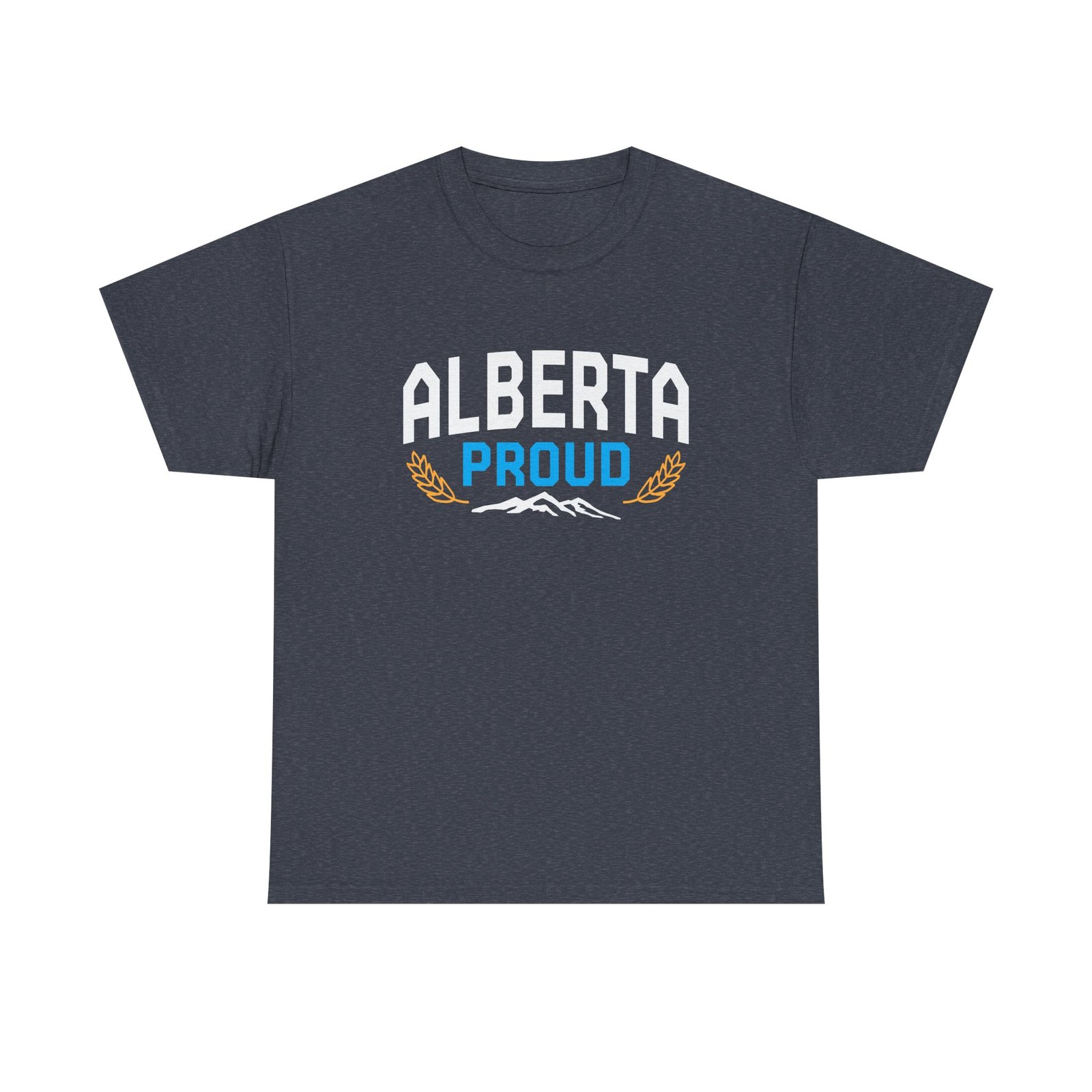A soft, sturdy tee that wears like home. This classic crew-neck shirt carries a bold, retro-inspired “ALBERTA PROUD” design across the chest — crisp white lettering, a bright blue accent, and subtle mountain and wheat graphics that speak to prairie skies and Rockies horizons. It’s the kind of shirt you reach for when you want to show quiet pride: heading to a local game, running errands, meeting friends at a café, or layering under a jacket for a weekend drive through canyon country. The fabric feels smooth against the skin and holds vibrant prints with clarity, so the design stays sharp through washes. Simple, honest, and made to be lived in — for anyone who wants their roots to be seen without shouting.