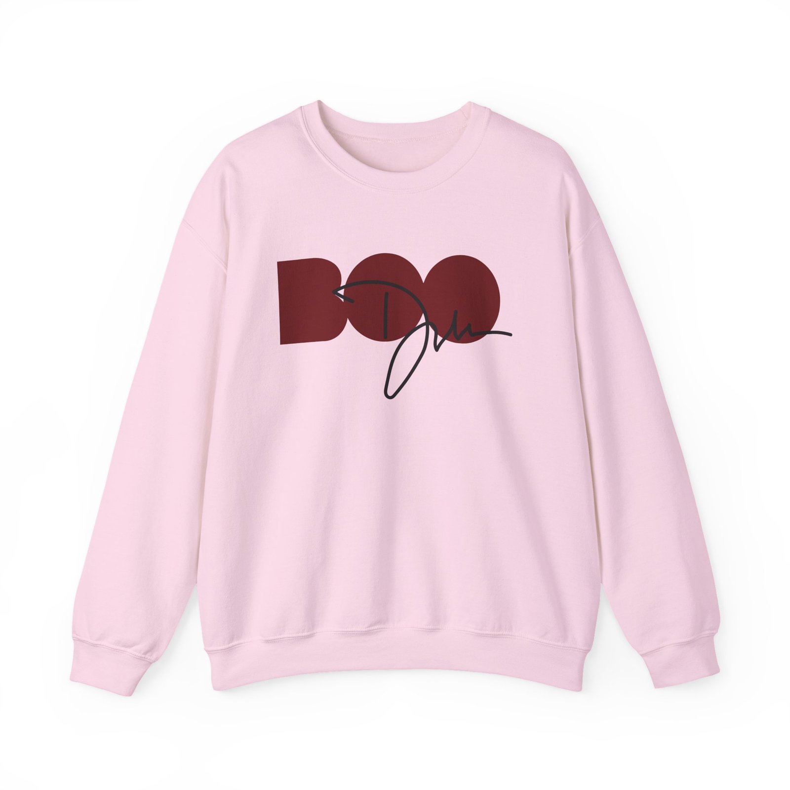 The Dawn Staley Boo Sweatshirt blends cozy warmth with quiet confidence. A clean white crewneck features a bold maroon “Boo” block logo softened by a handwritten signature line, giving it a subtle, artful, lived-in feel. Perfect for slow mornings, late-night drives, or casual studio hangs, this sweatshirt makes a personal statement without being loud.