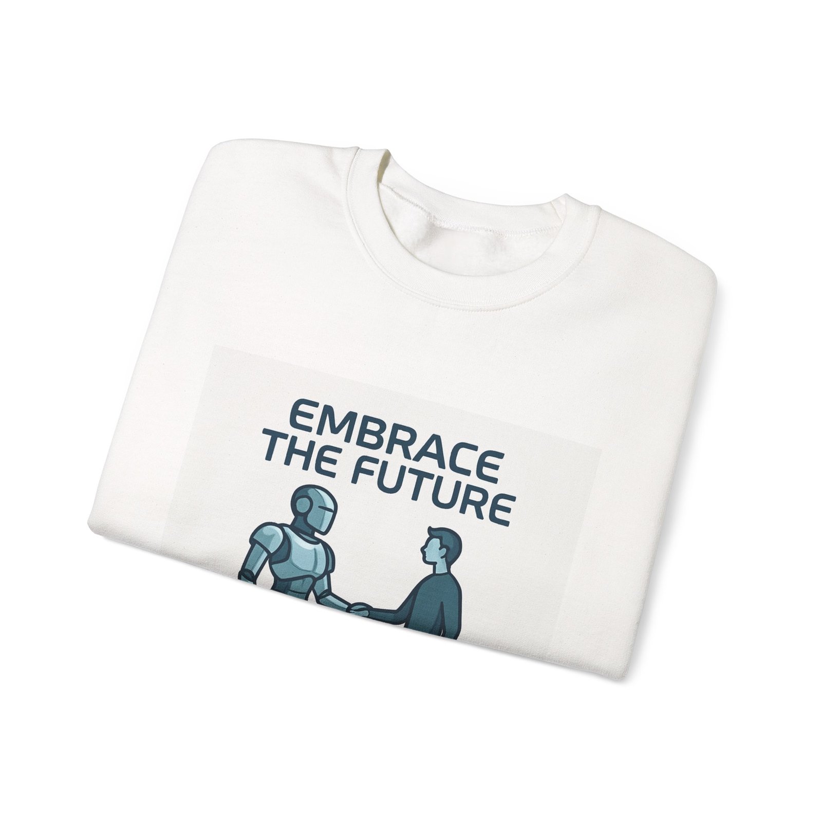 Embrace the Future Sweatshirt — Robot & Human Handshake Crewneck