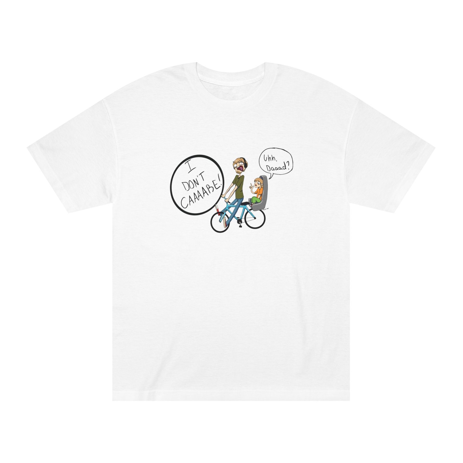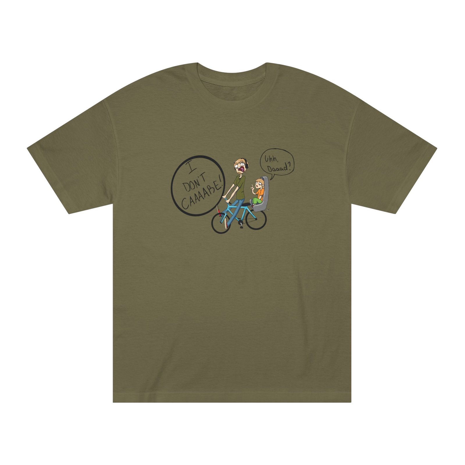 Bring a viral gaming moment to your wardrobe with the I JUST DONT Caaaabe uhh daaad t shirt, inspired by PewDiePie’s Happy Wheels antics. This light, lived-in tee carries a quiet laugh and a touch of meme magic. The soft white classic tee features a small, hand-drawn illustration across the chest: two friends on a tandem bike, one nervously saying “I don’t cannonball” while the other replies “um…don’t.” It’s like a slice of warm, awkward summer—bike rides, inside jokes, and easy company—all wrapped into wearable fan art.