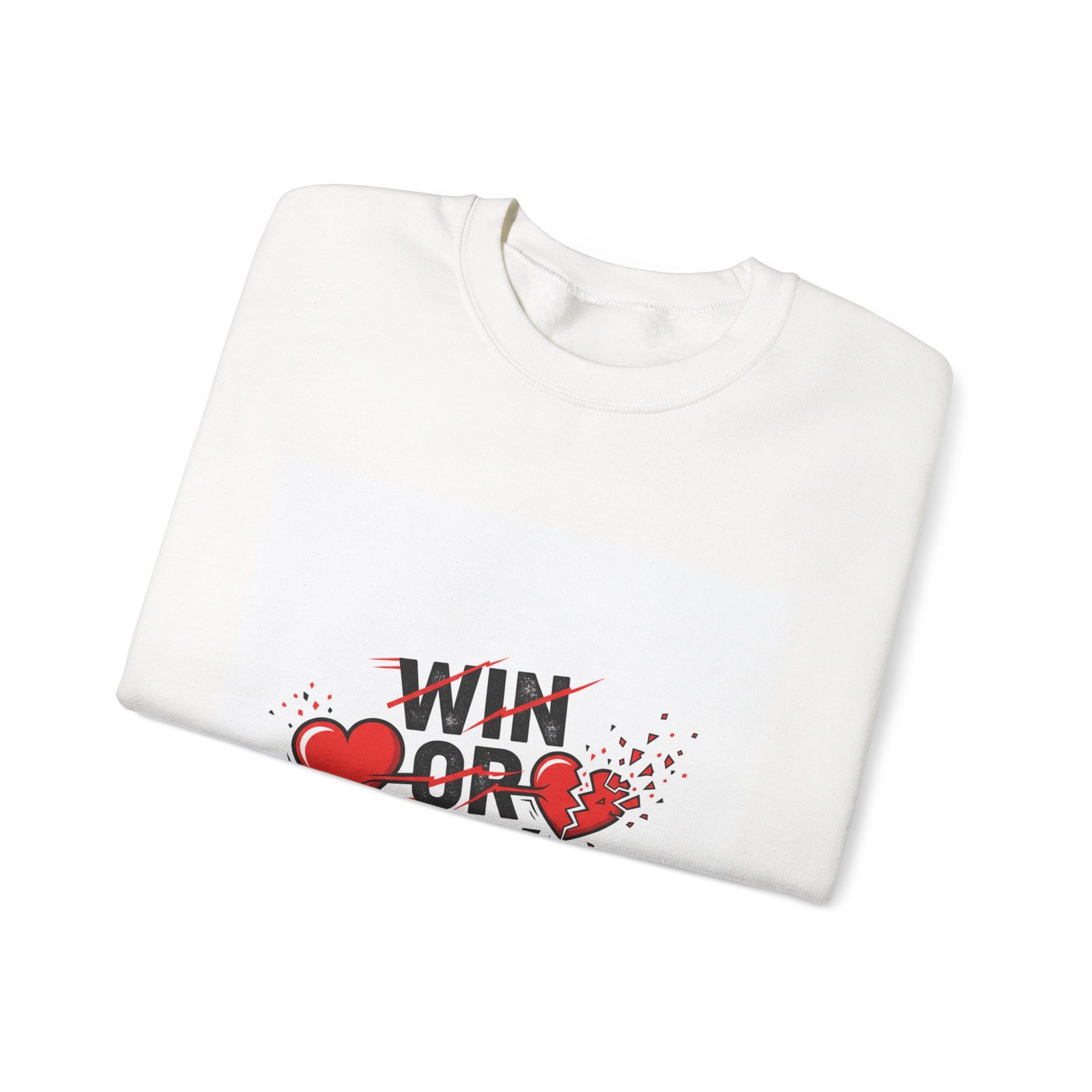 A cozy crewneck sweatshirt with a tongue-in-cheek sports fan graphic that captures game-day highs and lows. The central monochrome-and-red artwork features bold stencil lettering and simple heart icons arranged like emotional panels — a humorous, team-neutral take on the playoff rollercoaster. Designed for fans who want wearable reactions during tense games, the sweatshirt pairs clear, dramatic typography with a restrained color pop for versatile stadium and watch-party wear.